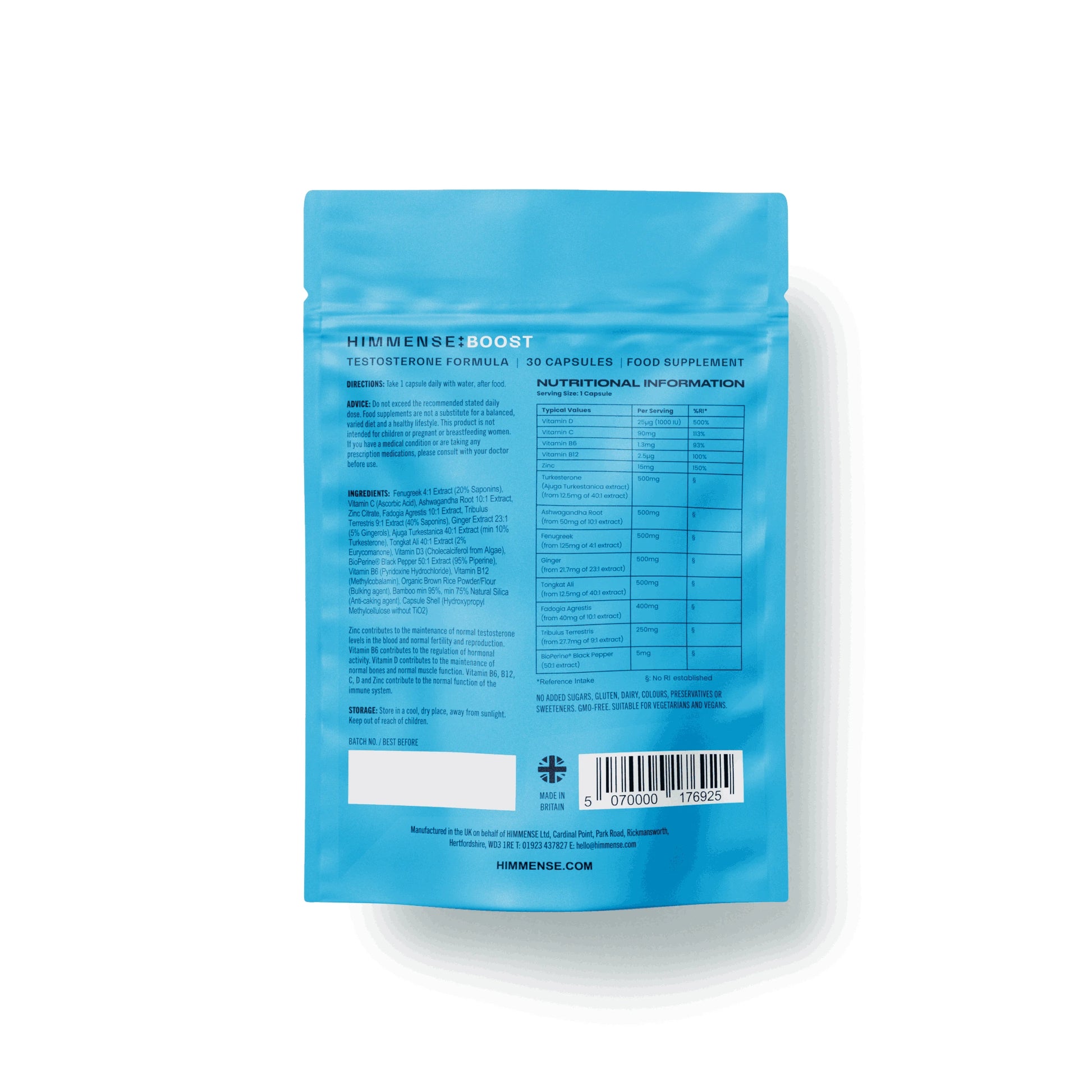 Developed and produced in the UK. Our manufacturer’s facility is certified as meeting GMP standards and HACCP quality protocols. They are registered and approved by the FSA, MHRA, FDA & Organic Food Federation.