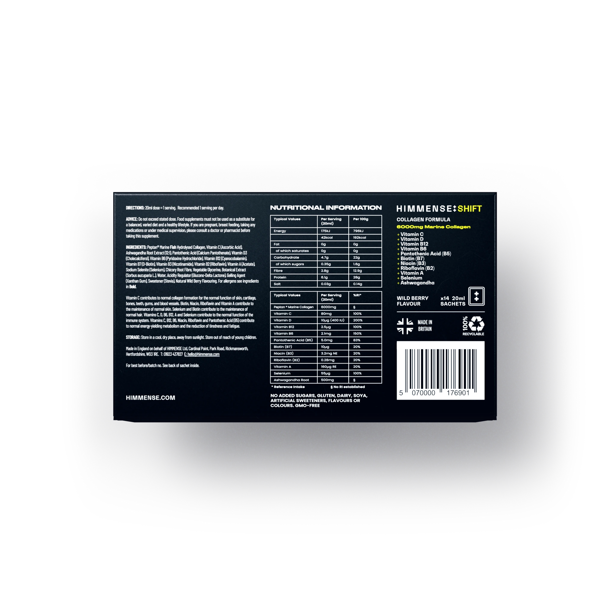 SHIFT is made with hydrolysed marine collagen liquid, which makes it highly bioavailable - easier to absorb - and more effective.