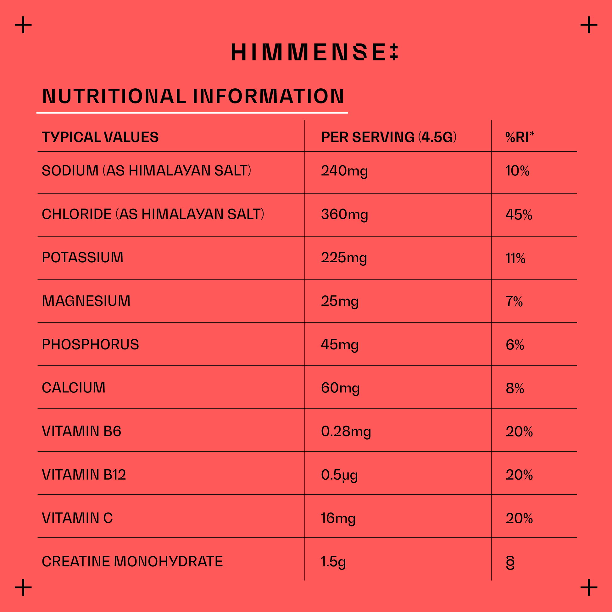 Sodium (as Himalayan pink salt) for hydration, fluid balance, transport of nutrients, physical performance, endurance.1 |